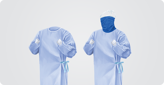 サージカルガウン L4はAAMIレベル4相当の高いバリア性を有しています。キープアウトカード®で清潔者と介助者の持ち手範囲を明確に区分することで安全性を向上しています。